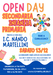 Il giorno 13/12/2025 l’Istituto Martellini aprirà le sue porte alle famiglie che lo vogliano visitare in vista delle iscrizioni per il nuovo anno scolastico.